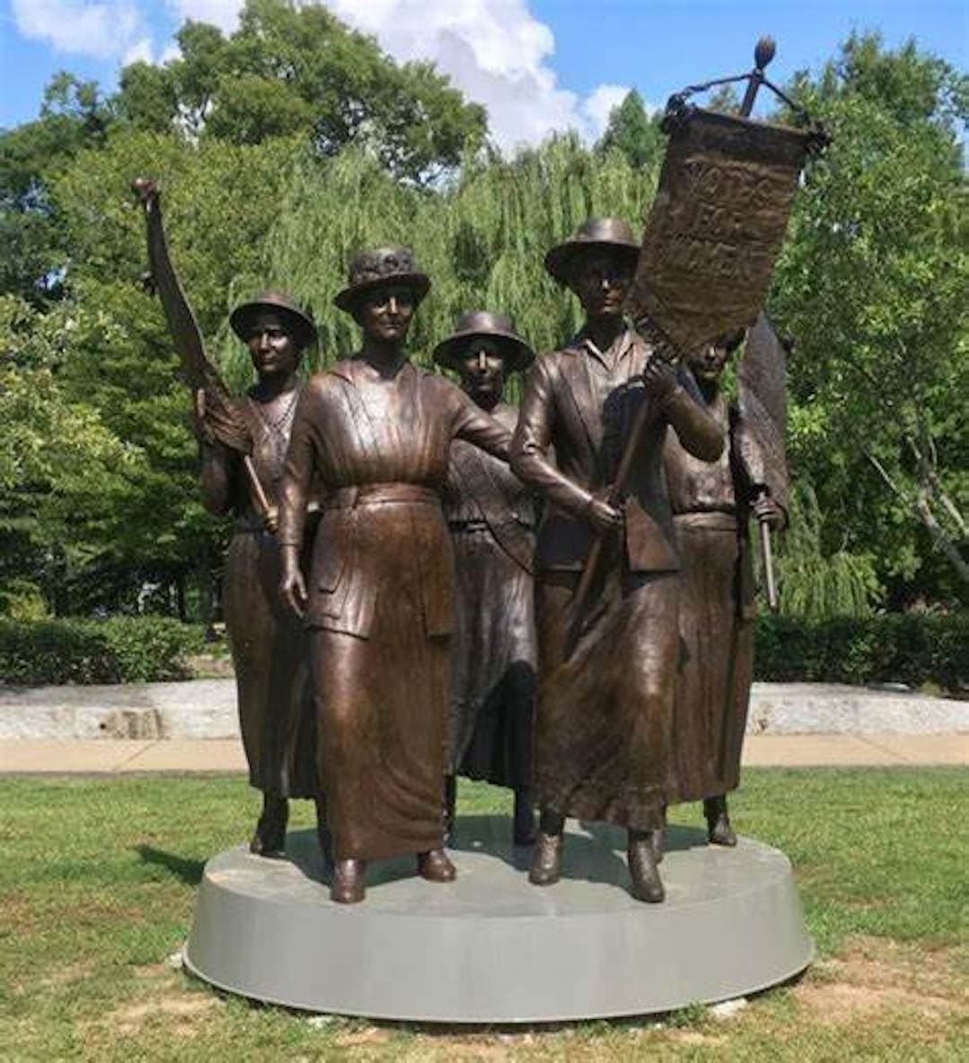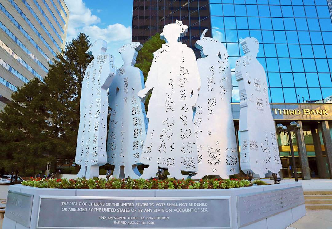 Before you peruse this gallery, see if you can name three suffrage monuments in the country. Stumped? Think about what makes a monument memorable. It usually comes down to subject, scale and location. The most recognizable monuments in the United States are massive in scale, located in the nation's capital or other tourist sites, and typically honor white men. Suffragist memorials, however, suffer from a lack of visibility. This began in 1921, when Congress relegated Adelaide Johnson's "Portrait Monument to Women's Suffrage" to the Capitol basement until 1997. Even today, one hundred years after women won the right to vote, there are fewer than twenty public memorials to suffrage. The monuments that do exist tend to honor the same leaders, are small in scale and often located in cities and towns that draw few visitors. As you scroll through the images, pay attention to how often suffragists are honored collectively, rather than individually, as well as to the scale and location of suffrage monuments.